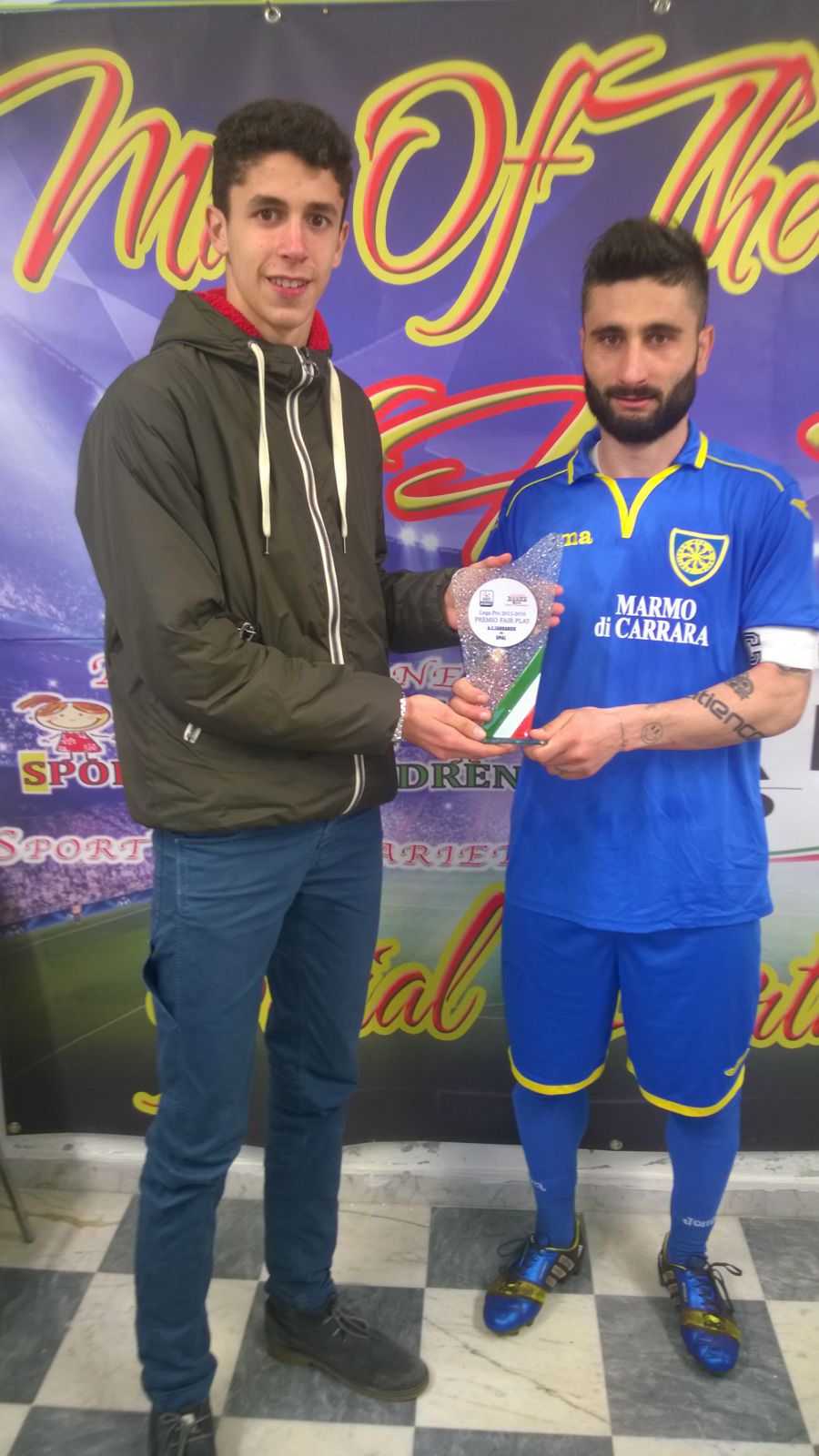 Il premio “Fair Play” è andato a Francesco Dettori, esperto centrocampista gialloblu ha avuto il merito, oltre di giocare una grande partita, di aver segnato il gol del finale 1-2 con una grande punizione.